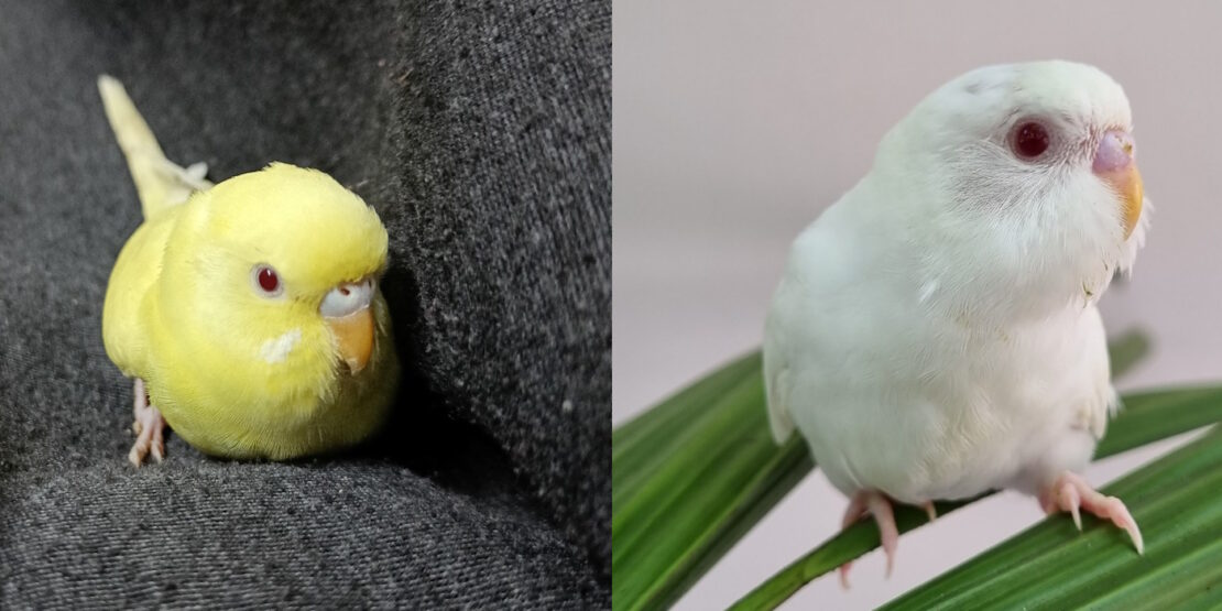 Inos ist eine Bezeichnung für Wellensittiche, die entweder Albinos (rein weiß) oder Lutinos (rein gelb) sind. Beide Varianten zeichnen sich durch ihre roten Augen aus.
